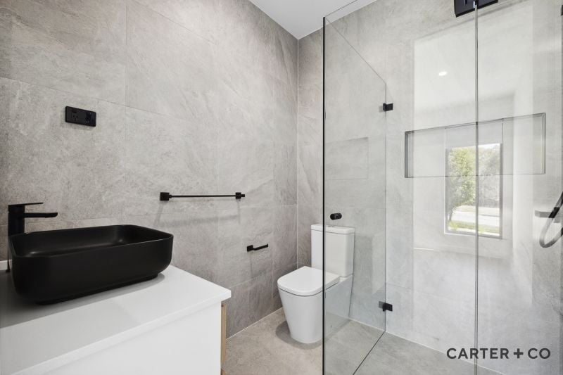 + Three bedrooms with built-in robes and services by the main bathroom with a bathtub, shower, and separate toilet